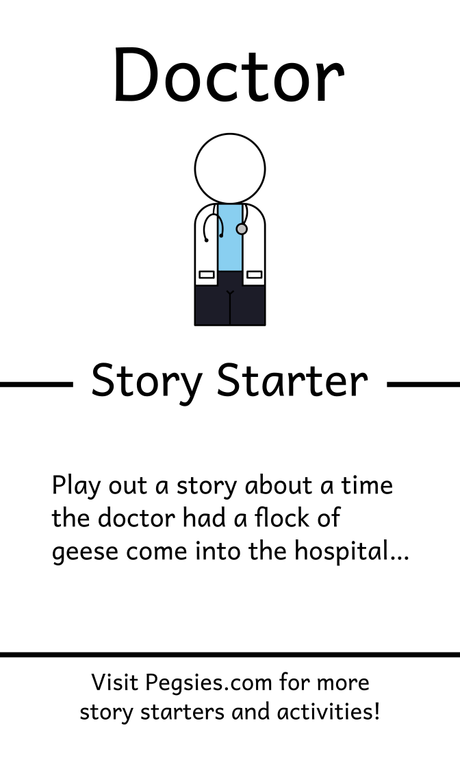 Below are all Story Starters for Pegsies First Responders Collection. You are free to use, save, print, and share these Story Starters. If you are feeling inspired, you can even submit your own Story Starters to be possibly included in our Fan Section.